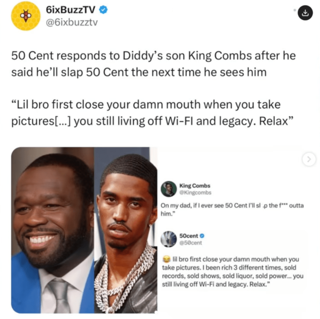 As King Combs’ career continues to grow and 50 Cent’s legacy remains influential decades in, this moment highlights how intergenerational tension continues to fuel fandom and media coverage alike.